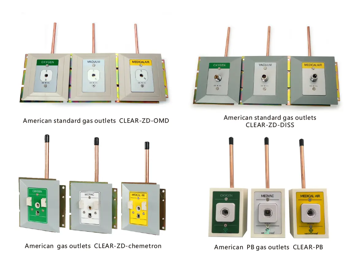 2. Χρησιμοποιήστε το πρότυπο χρώματος των ΗΠΑ για να προσδιορίσετε το αέριο: τετράγωνες υποδοχές με διαφορετικές γωνίες χρησιμοποιούνται για να διακρίνουν τα αέρια για να αποφευχθούν διαφορετικά βύσματα αερίου από την κακομεταχείριση. Είναι κατάλληλο για τα αμερικανικά βύσματα Ohmeda