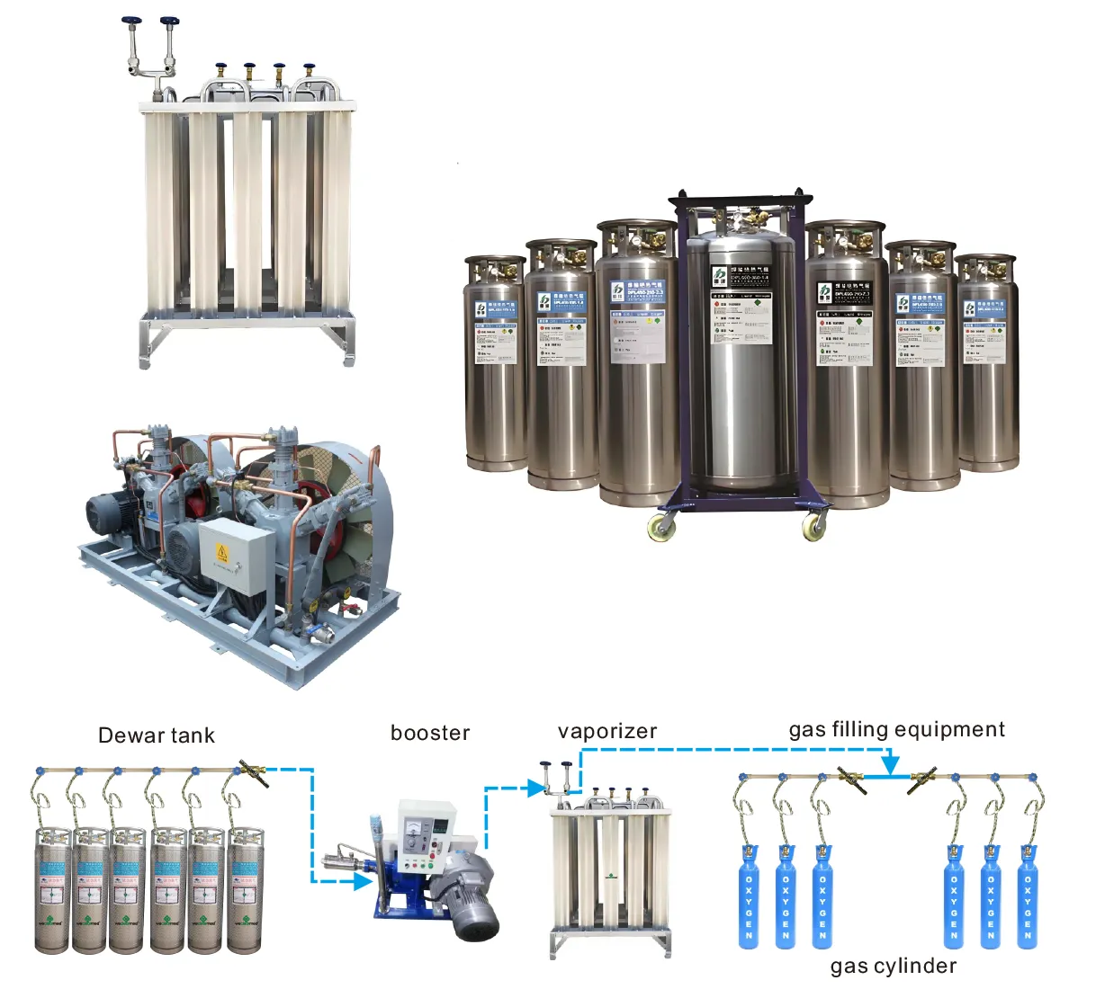 Το σύστημα αποθήκευσης κρυογονικού υγρού οξυγόνου AMCareMed περιλαμβάνει τη δεξαμενή κρυογονικού υγρού οξυγόνου, την αντλία κυλινδρικού κυλινδρικού υγρού υγρού, την εξατμιστή, τη συσκευή ρύθμισης της πίεσης αερίου και την πολλαπλή πλήρωσης.